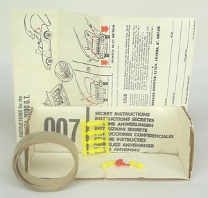 The clean Secret Instructions Packet has been carefully opened and inside, there are the instructions, sprue with four rockets attached and two loose rockets. Curiously, this model has a factory spare gear stick! All original. No badge.