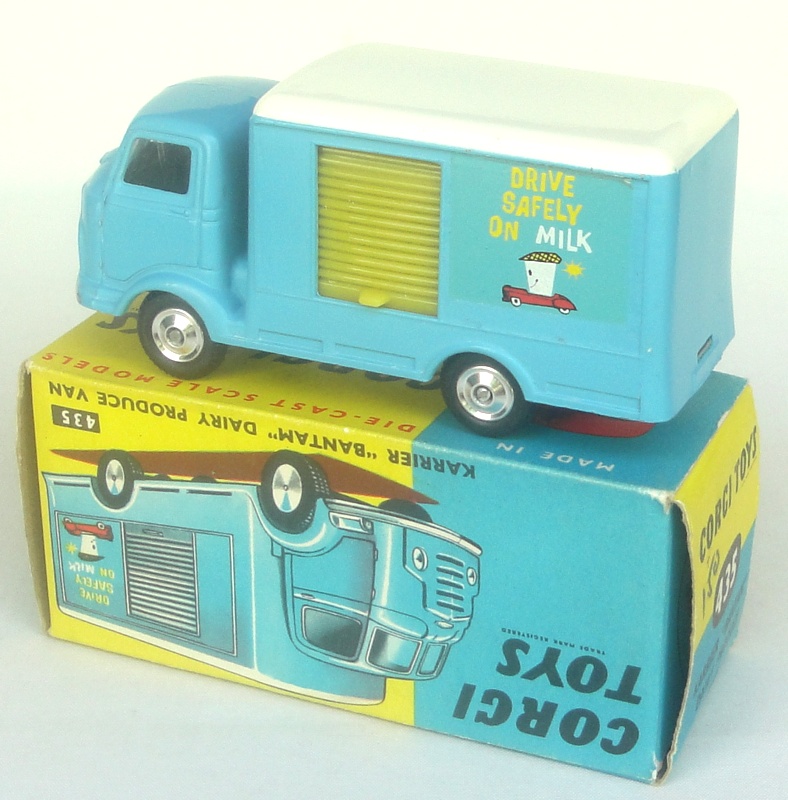 Corgi 435 Karrier Bantam Dairy Produce Van "Drive Safely On Milk". Very near mint/boxed. From a beautiful, single-owner collection, some 25 years in the making.