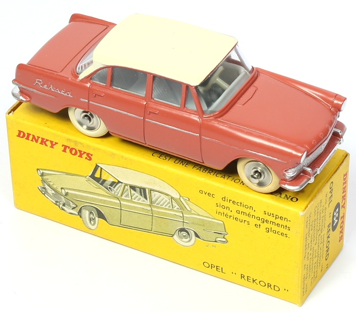French Dinky 554 Opel "Rekord". Deep coral pink & cream. Near mint/boxed. From 'The 25 Year' Collection.