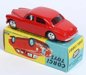 Corgi 205 Riley Pathfinder Saloon. Very near mint/boxed. Scarce version with spun wheels. From a dedicated Corgi collector in The Home Counties.