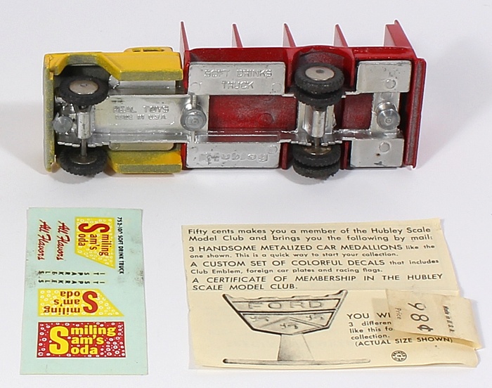 Hubley'Real Toys' 752 Soft Drinks Truck. Yellow & red issue. Very near mint/boxed, with unapplied decals, printed slip with original U.S price tag . From The 25 Year Collection.