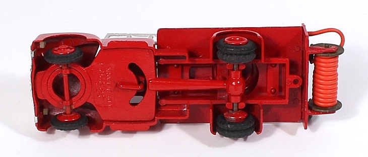 The first we have ever offered for sale. This is a vibrant and complete Ladder Fire Truck , looking unused with complete lettering on the bonnet, and all components intact. Front wheel steering. Red metal wheels and fone original tyres.