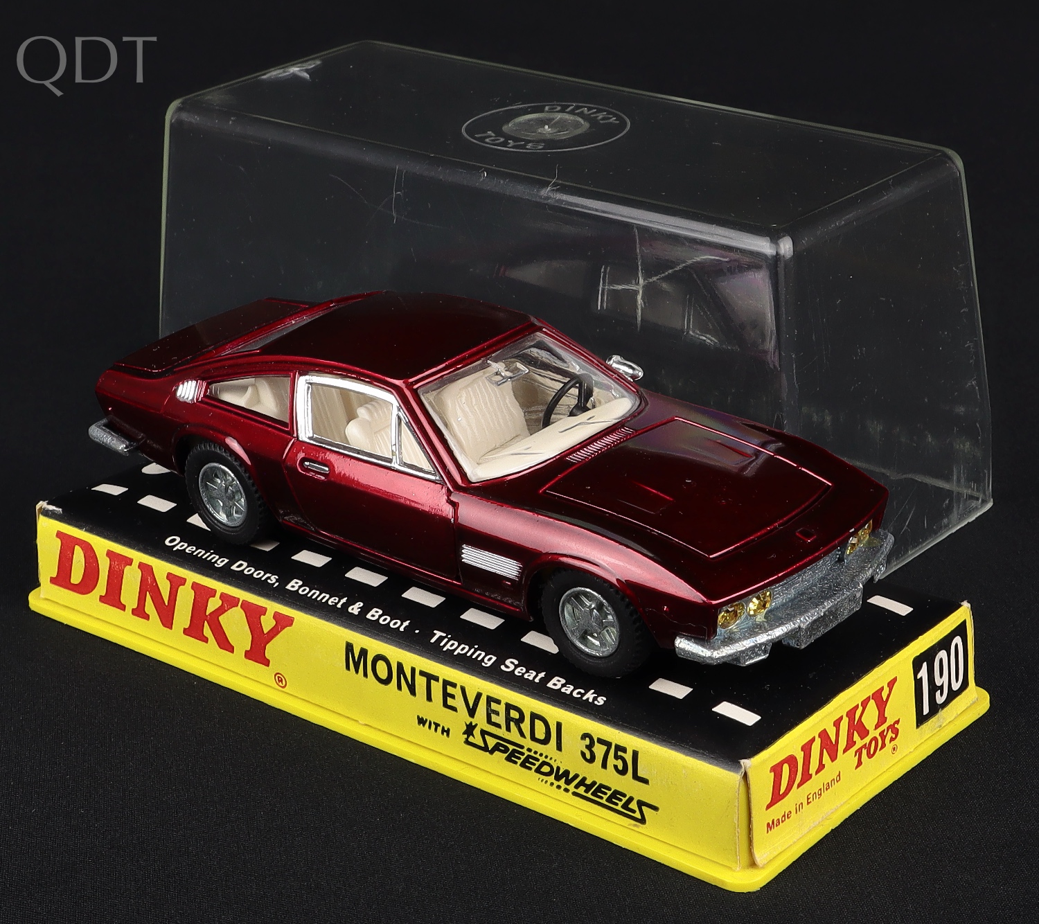 Monteverdi 375L by Dinky Toys, No. 190. Metallic ruby red with 5-SPOKE cast wheels. Scarce ! Very near mint/boxed. From The Berlin Collection.