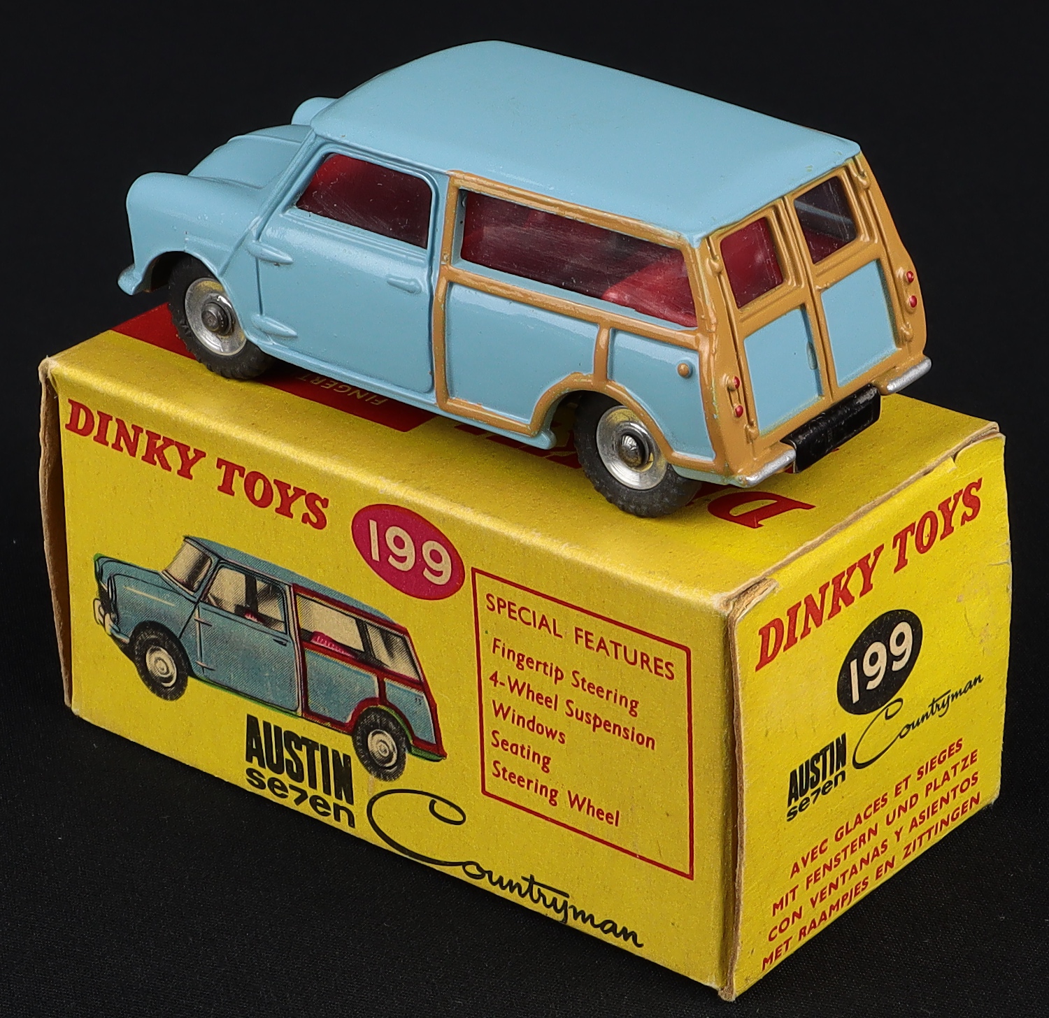 Austin Se7en Countryman by Dinky Toys, No. 199. Very, very near mint/boxed. Rare version in SUEDE blue with a RED interior, gloss baseplate. Harder to find box version. From The Reference Collection of fine Dinky Toys.