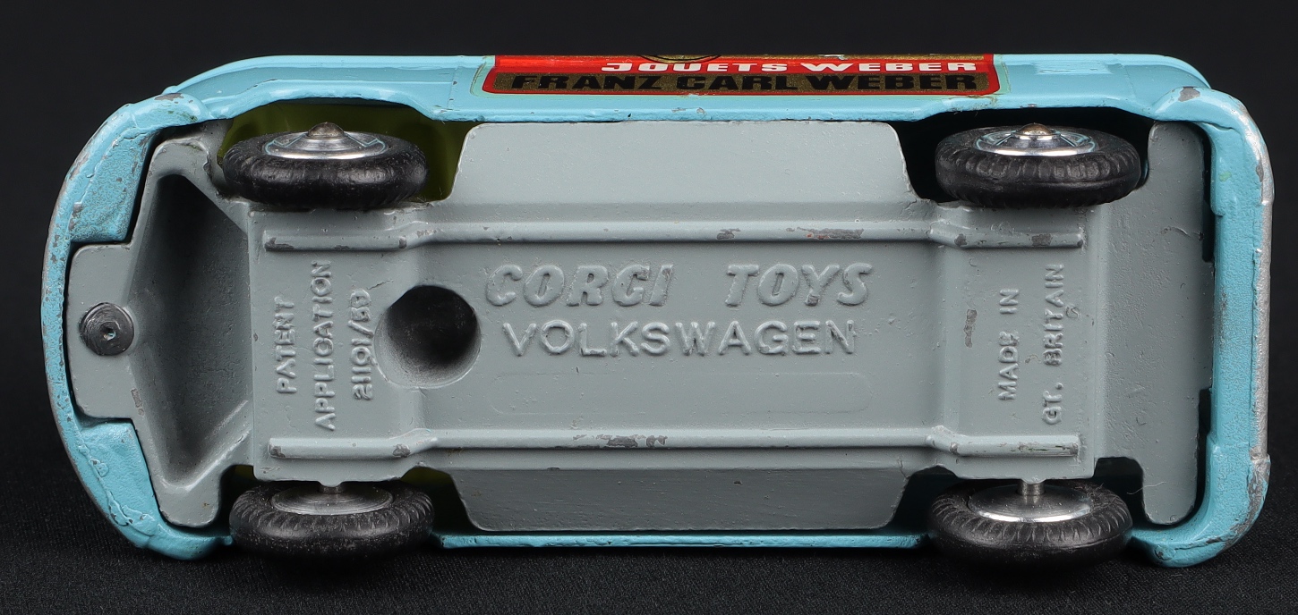 Volkswagen 'JOUETS WEBER' by Corgi Toys, No. 441. Near mint plus/never boxed. Rare Code 2 Promotional Corgi Model. With period FRANZ CARL WEBER JOUETS WEBER Tag. From The Swiss-French Collection. Starting bid £250. Please note that QDT apply 12.5% buyer's commission.