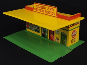 This tinplate ‘FILLING AND SERVICE STATION’ has rarely been out of its box. Bright, unscratched lithography with a typical period scene depicted and mechanic in the doorway.