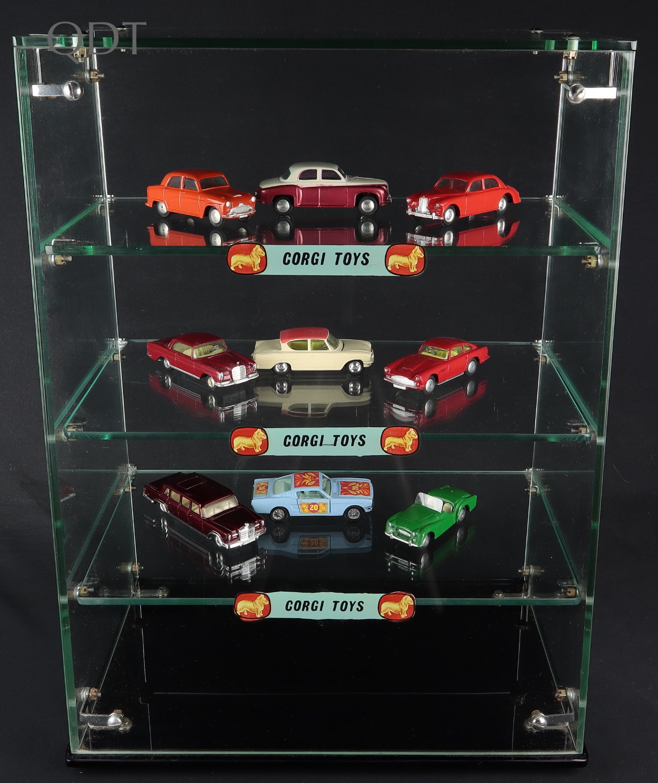 Original early Corgi Toys Glass Cabinet. Very near mint. A rare and impressive display piece from The Elmer Collection.