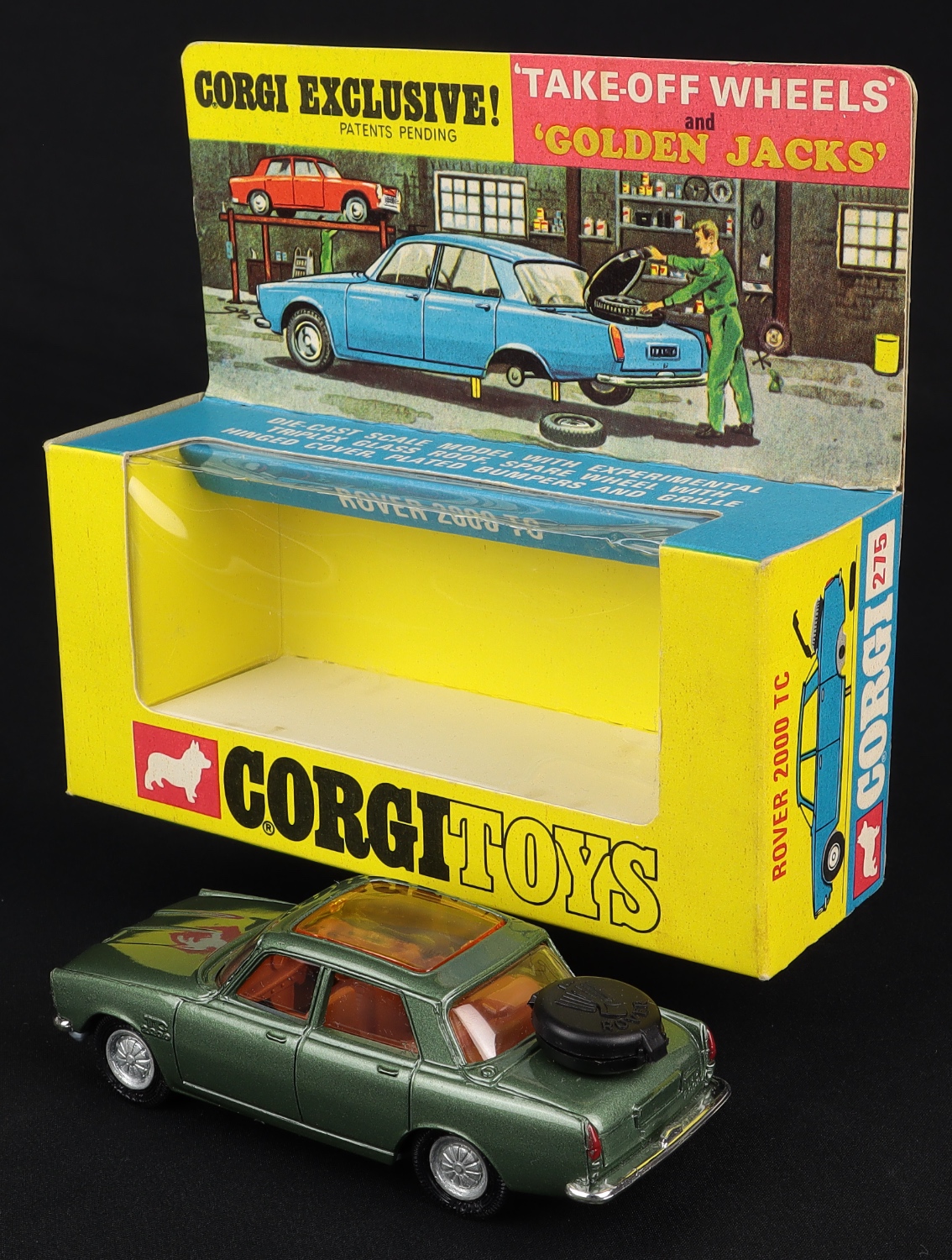 Rover 2000 TC by Corgi Toys, No. 275. Metallic olive green issue with brown interior. Very, very near mint/boxed. From The Elmer Collection.
