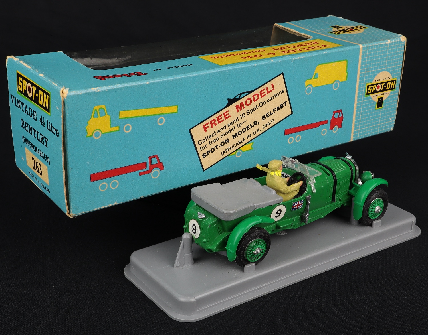 Vintage 4 1/2 Litre Bentley (supercharged) by Spot-on Models, No. 263. Very, very near mint/boxed, with Informative Slip & Spares still stapled to box inner. From The Heart of England Collection.