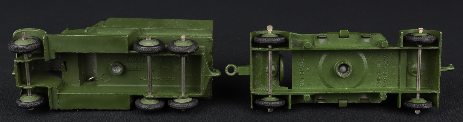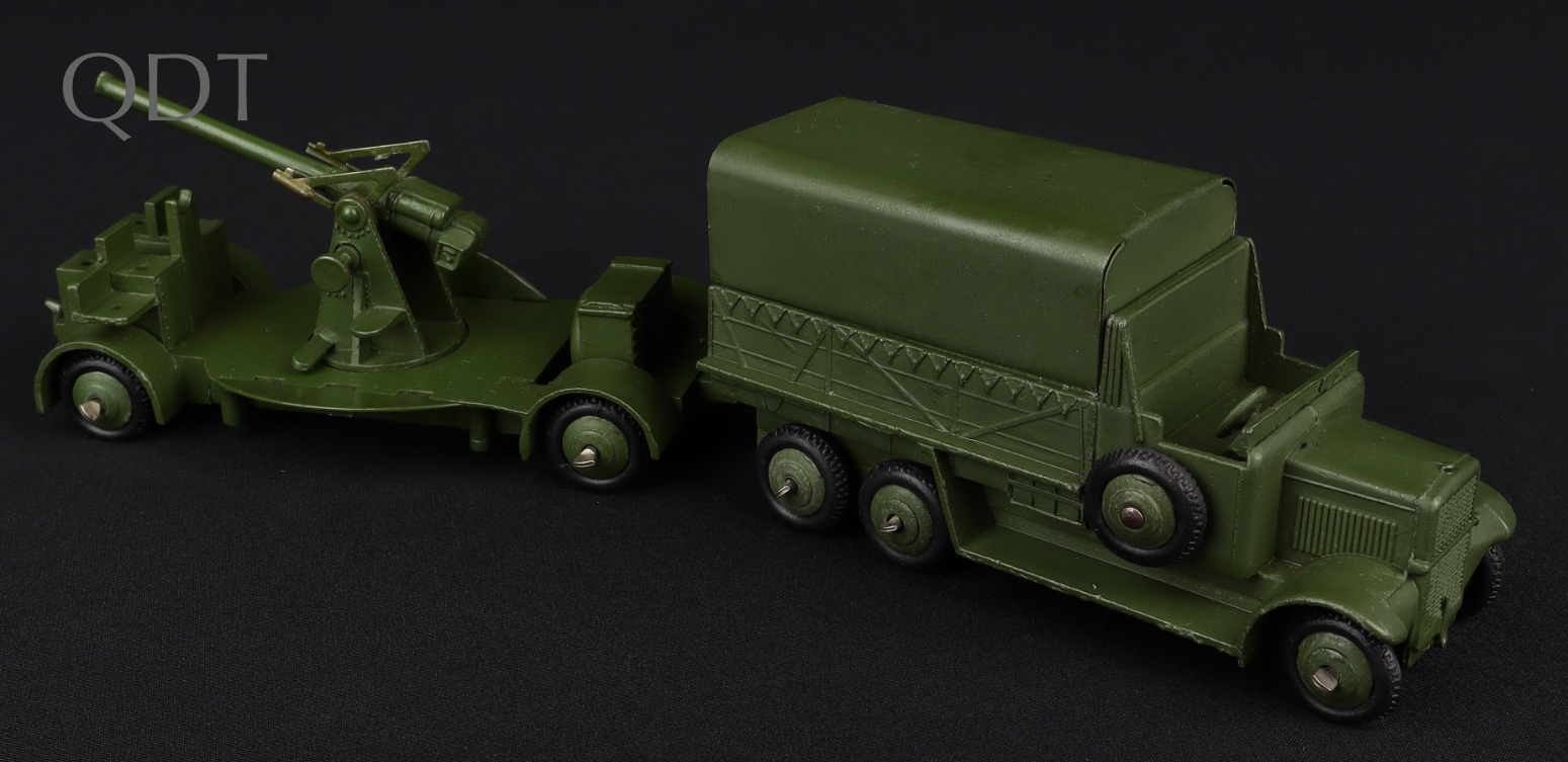 2) Dinky 161B Anti-Aircraft Gun in matching finish Sold from a shopkeeper’s trade box of four or as part of Gift Set 5 Military Vehicles. Issued 1950-55.