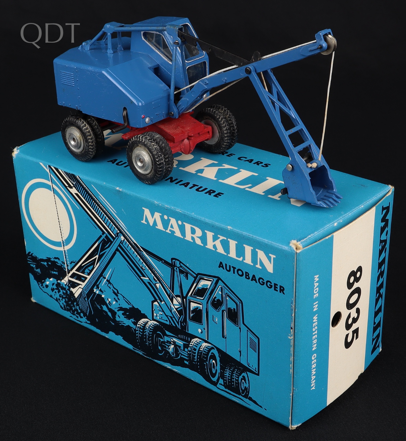 Autobagger Fuchs 301 by Marklin, No. 8035 . Mid-blue with shaped spun wheels. Very near mint/boxed, with packing card. Scarce. From The 25 Year Collection in California.