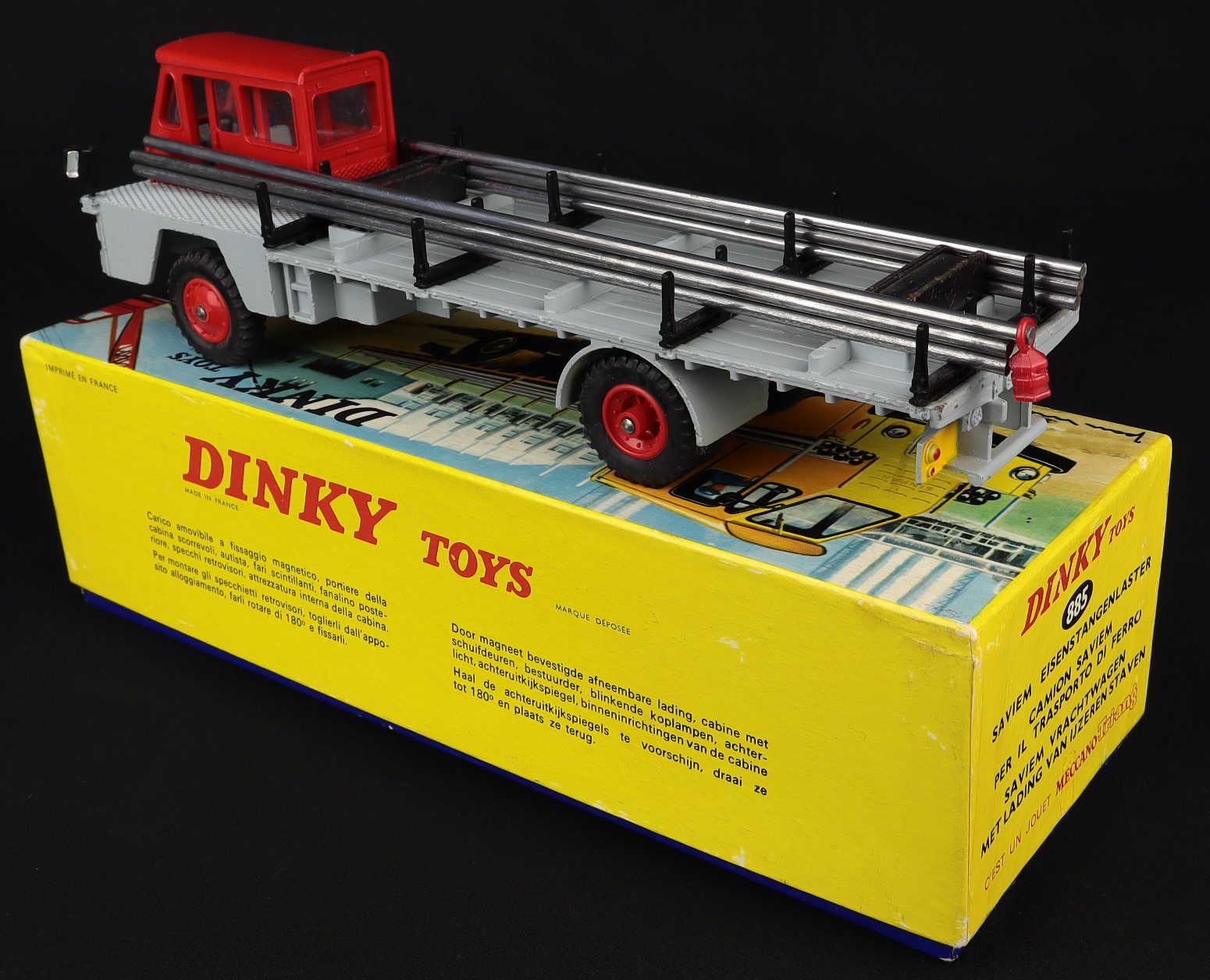 Saviem Sinpar Steel Carrier by French Dinky Toys, No.885. Very near mint/boxed, complete with upper & lower packing. Scarce. From The Heart of England Collection.