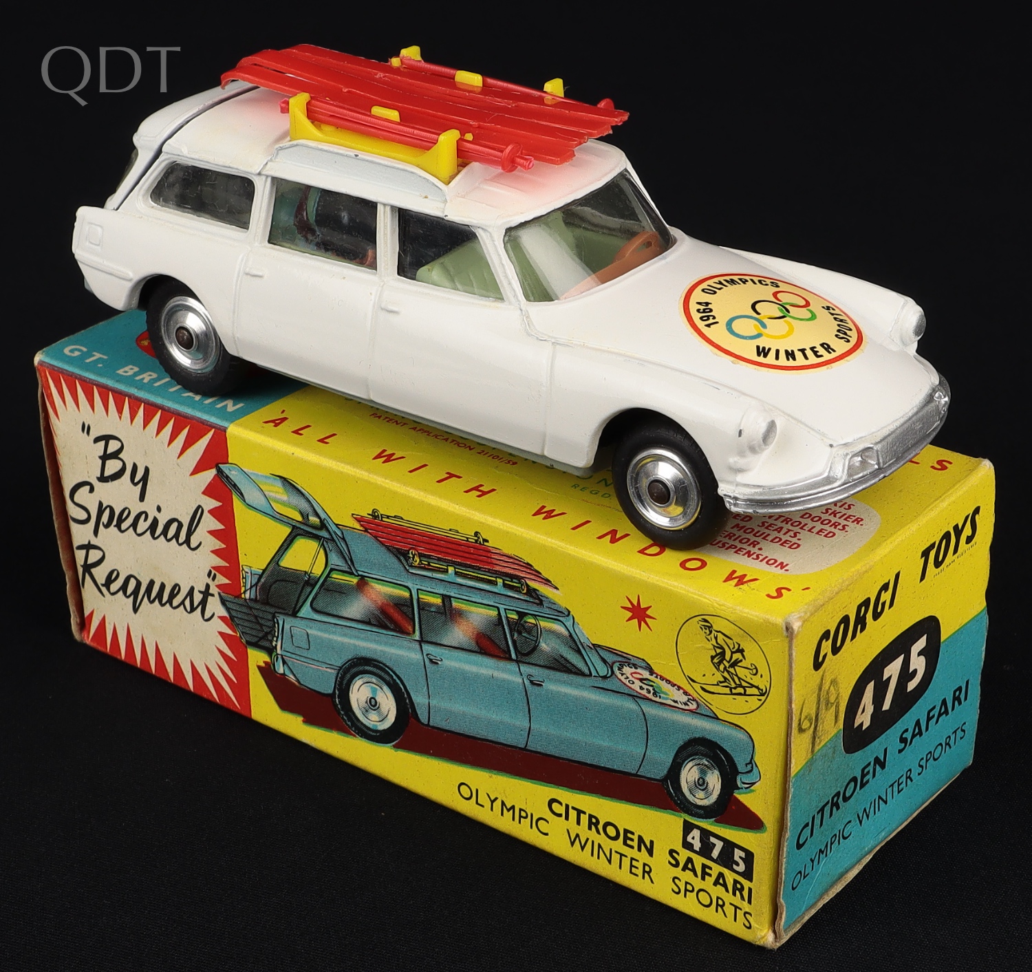 Citroen Safari '1964 Olympic Winter Sports' by Corgi Toys, No. 475. Red skis and poles version. Yellow roof rack. Very near mint/boxed with Ski-ing Figure & Leaflet. From The David Frank Collection.