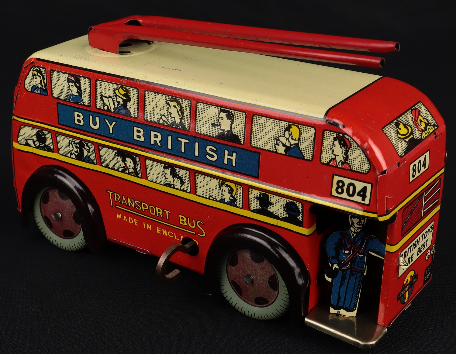 Double Decker Bus by Chad Valley Wee-Kin Toys. Near mint plus/boxed (wear). Clockwork with original WEE-KIN Key. Very scarce model from The Denis Tyler Collection. Starting bid £100. Please note that QDT apply 12.5% buyer's commission.