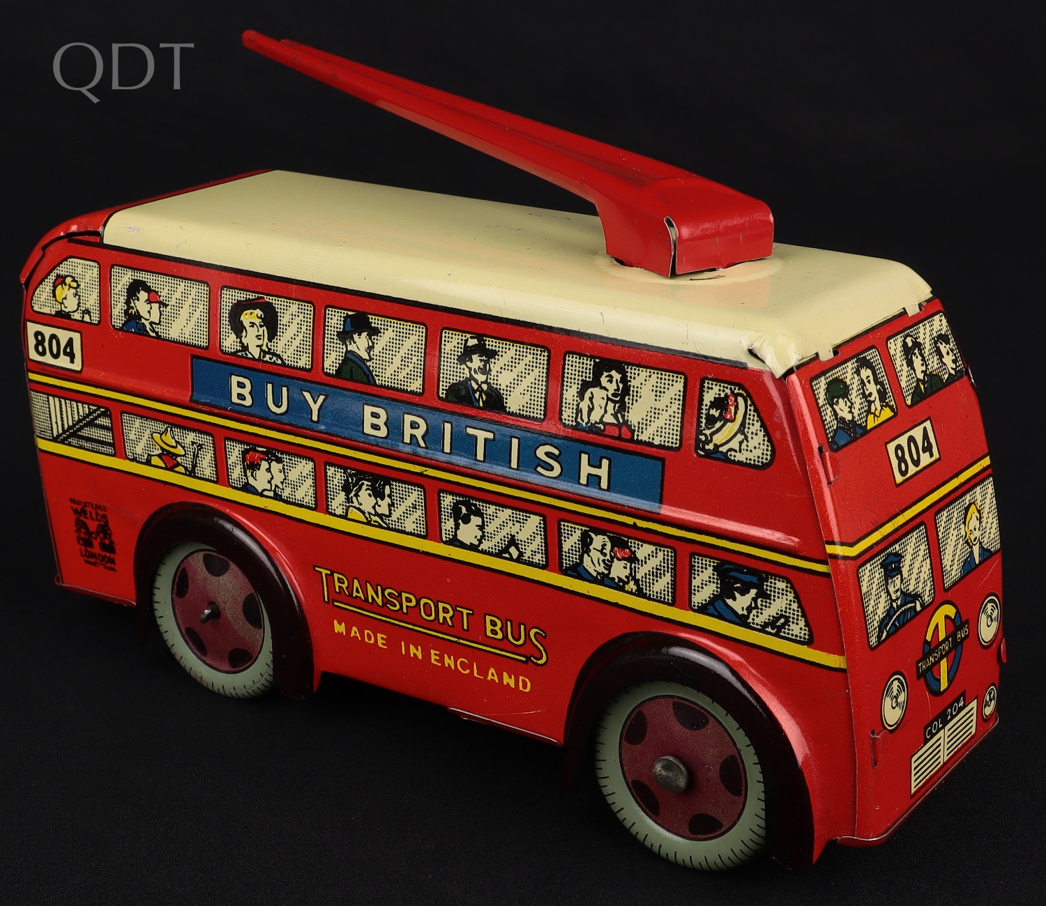 Wells Brimtoy Trolley Bus. Clockwork. Very near mint. Very fine and scarce model from The Denis Tyler Collection. Starting bid £100. Please note that QDT apply 12.5% buyer's commission.