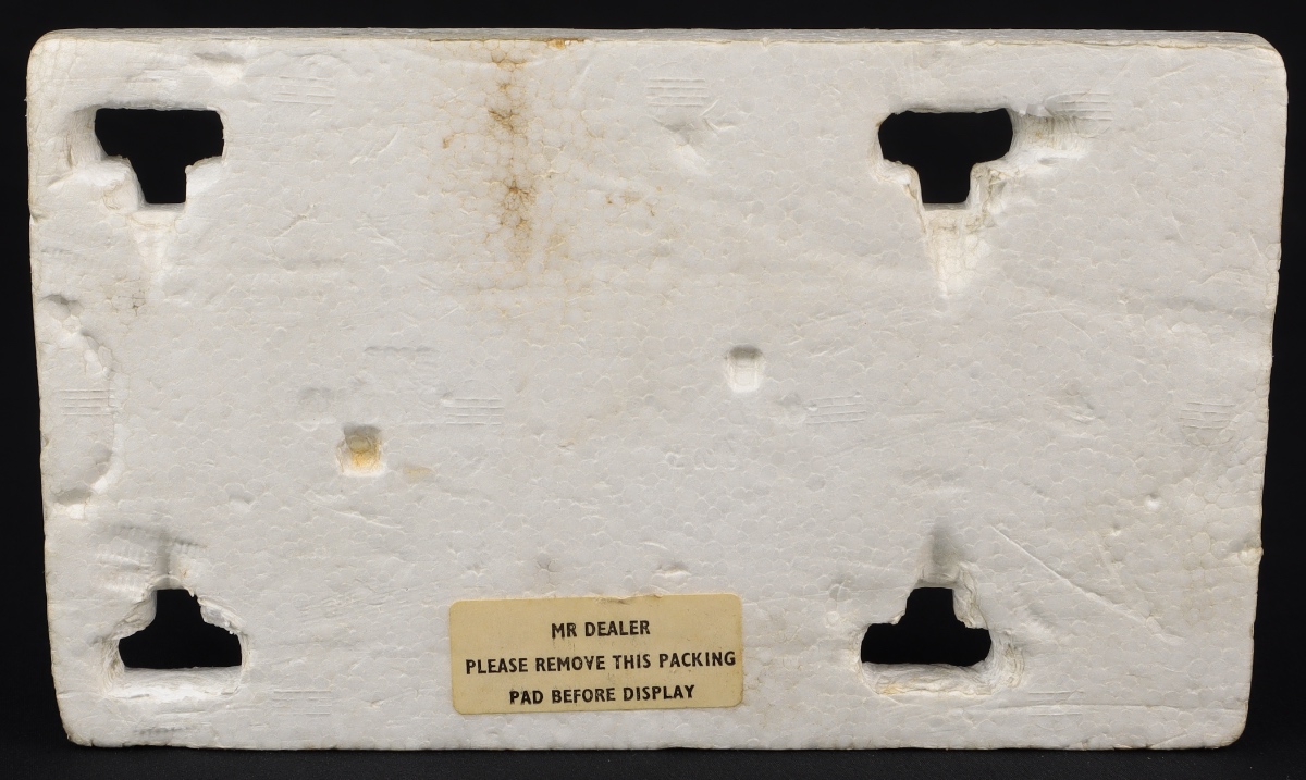 With the polystyrene tray which slides into the base and protects the plinth. Another polystyrene packing piece with original Mr. Dealer label.