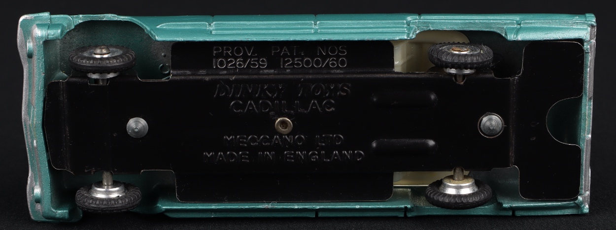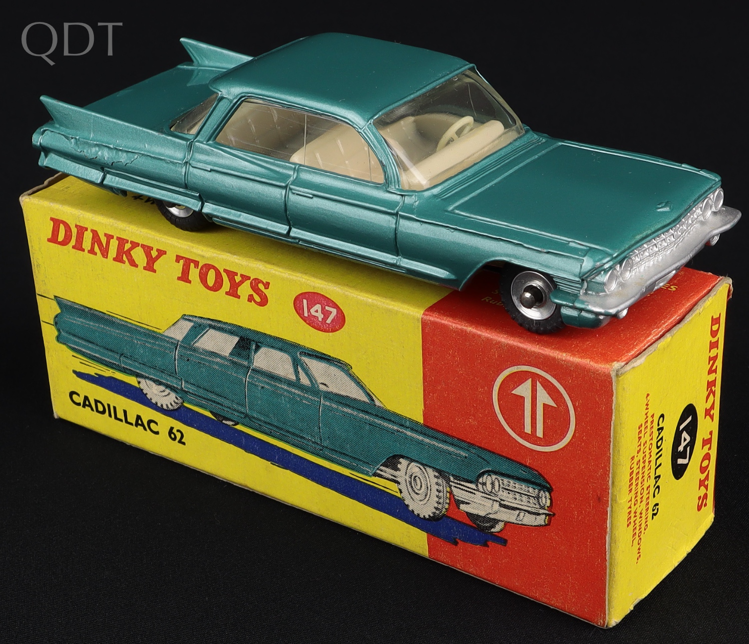 Cadillac 62 by Dinky Toys, No. 147. Metallic blue-green, OFF-WHITE interior, matte base. Very near mint/boxed. From The Rickman Collection. Starting bid £150. Please note that QDT apply 12.5% buyer's commission