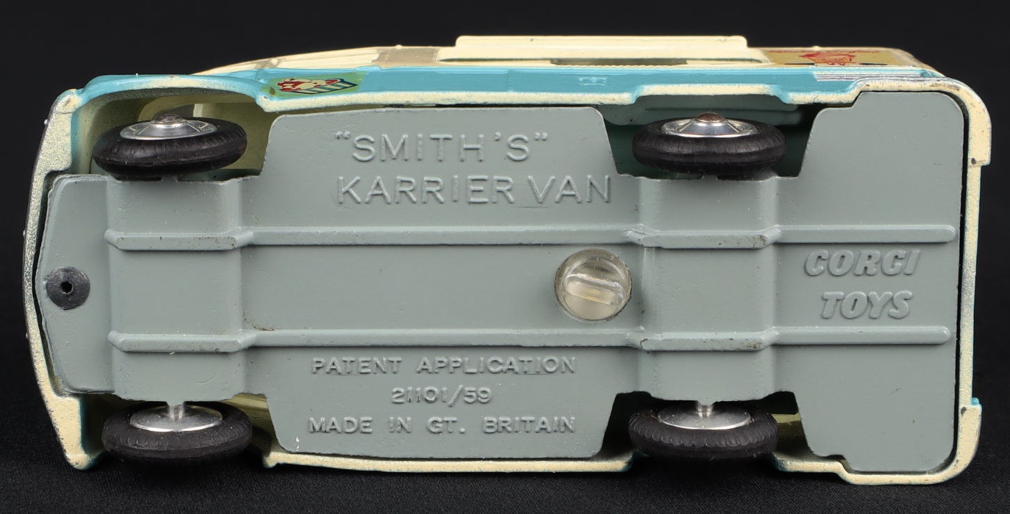 Issued between 1963-66, this popular ice cream van is in close to mint condition, with complete detailed transfers throughout and spring suspension on all four wheels. Fine original tyres. Ice cream vendor will endlessly serve you with an ice cream cone through the sliding hatch at the front, if you turn the little knob on the baseplate.