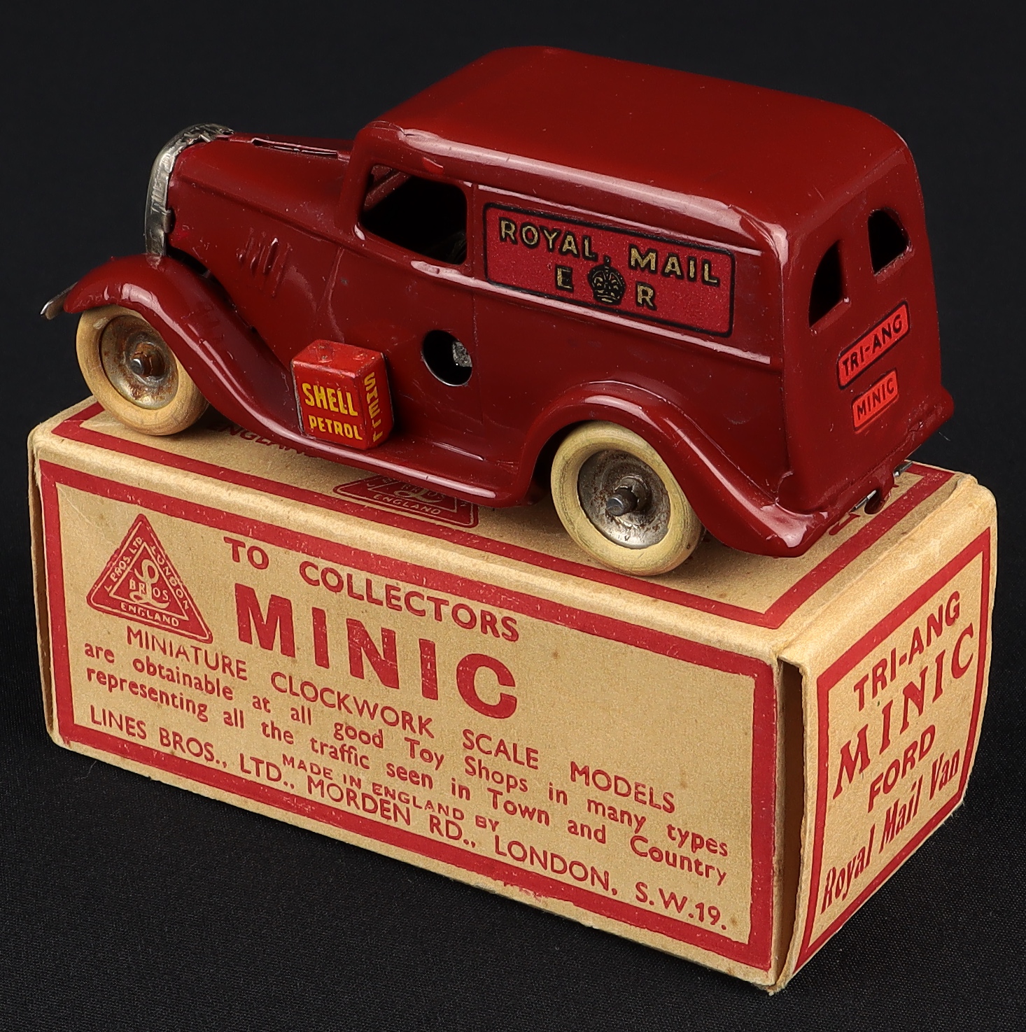 Ford Royal Mail Clockwork Van 'E R' by Tri-ang Minic Models, No. 3M. Early Edward VIII issue, from 1936. Scarce! Very near mint/boxed with working clockwork motor. Starting bid £150. Please note that QDT apply 12.5% buyer's commission.