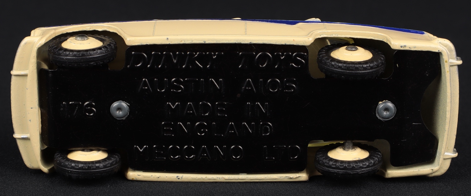Austin A105 Saloon by Dinky Toys, No. 176 . Very near mint/boxed. Cream with blue flash. From The Heart of England Collection.