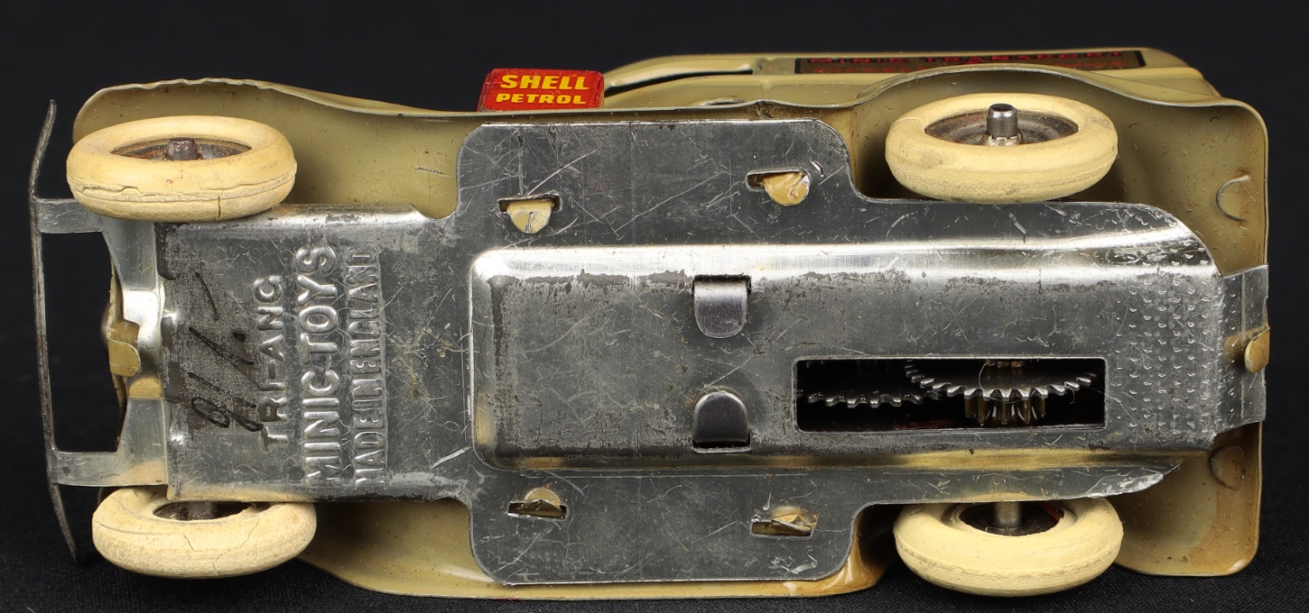 Shiny radiator and metal wheels. White well-shaped smooth tyres. Working clockwork motor. With original key.