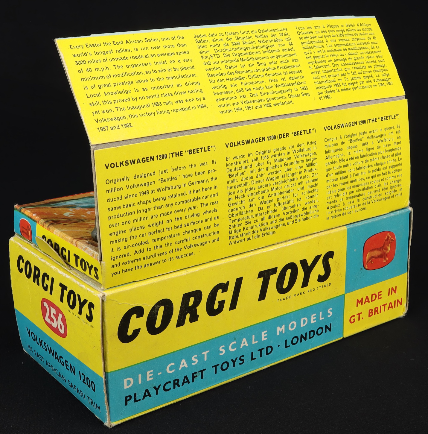 Volkswagen 1200 in East African Safari Trim with Rhino by Corgi Toys, No. 256. Very near mint/boxed. Left-hand drive. With all packing, leaflet & circular card ring. From Boris's Collection.