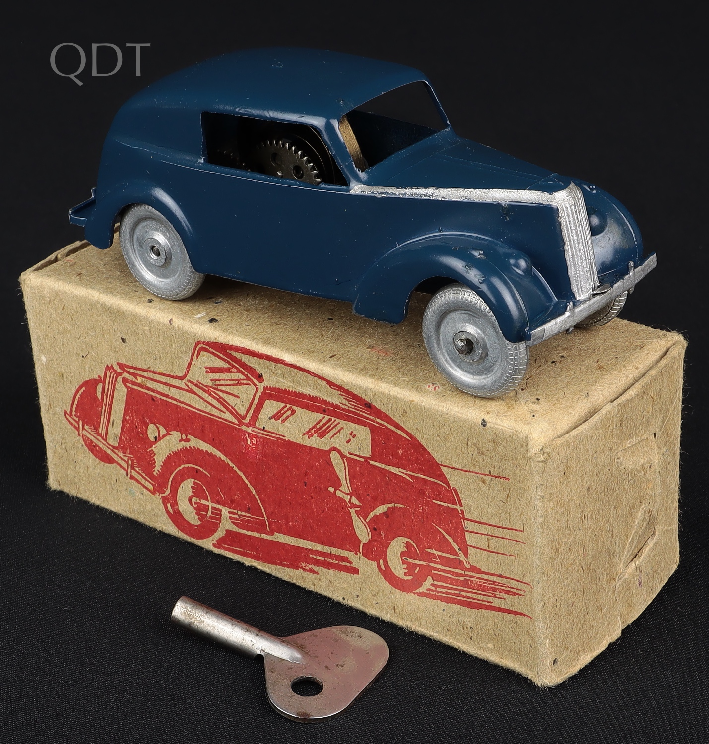 Vauxhall Saloon by Armstrong Toys. Very near mint/boxed with key. Working clockwork motor. Very scarce model from The Denis Tyler Collection. Starting bid £125. Please note that QDT apply 12.5% buyer's commission.