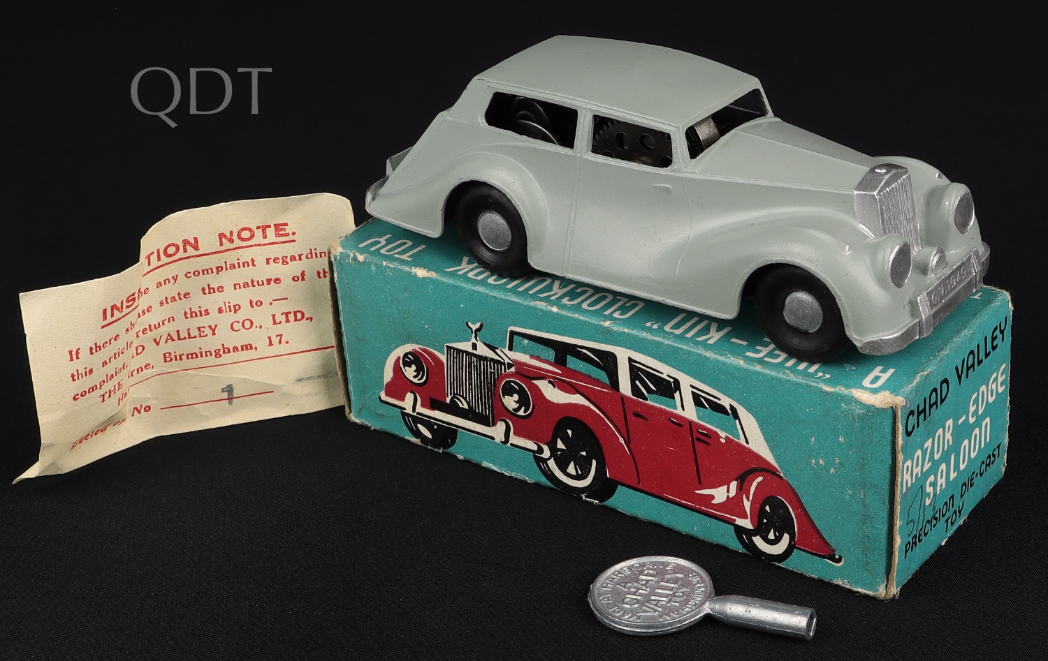 Vauxhall Saloon by Armstrong Toys. Very near mint/boxed with key. Working clockwork motor. Very scarce model from The Denis Tyler Collection. Starting bid £125. Please note that QDT apply 12.5% buyer's commission.