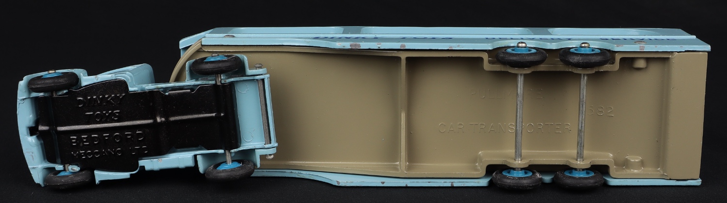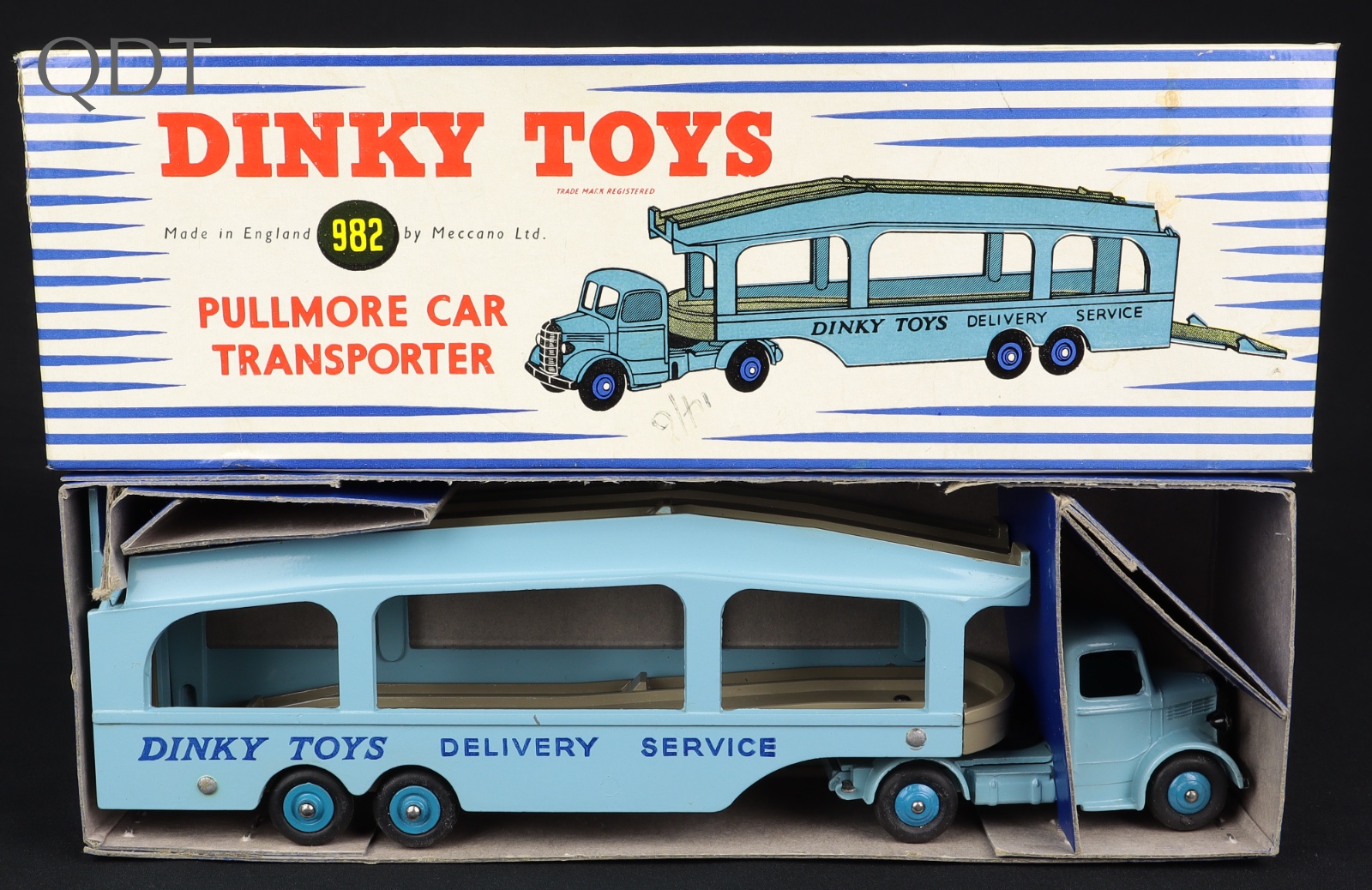 Pullmore Car Transporter by Dinky Toys, No. 582 982. Early issue without windows, 4 rivets, FAWN decks. Very near mint /boxed, with 2 packing wedges. From The Salisbury Collection.