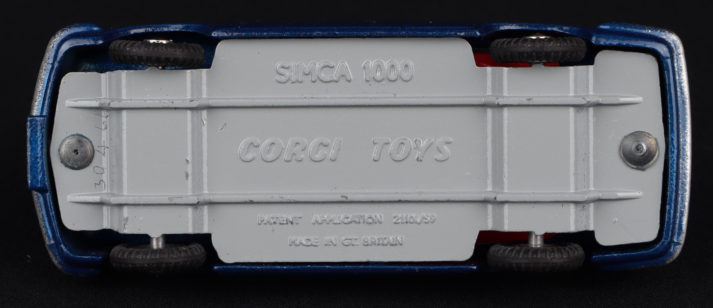 Simca 1000 Competition Model by Corgi Toys, No. 315. Hard to find version in deep metallic blue. Very near mint/boxed. A rare find from The Elmer Collection.
