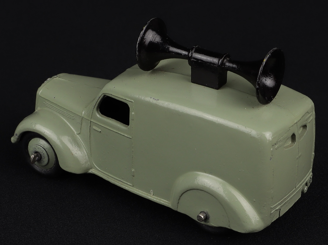 Loudspeaker Van by Dinky Toys, No.34C. Grey with black loudspeaker and grey wheels. Near mint plus/never individually boxed. From a one owner from new collection.Starting bid £75. Please note that QDT apply 12.5% buyer's commission.