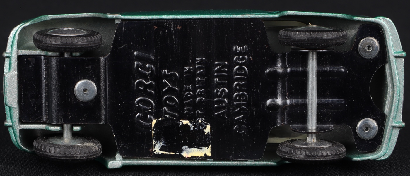 This Austin Cambridge model is finished in silver and bright metallic green. Not an easy find.