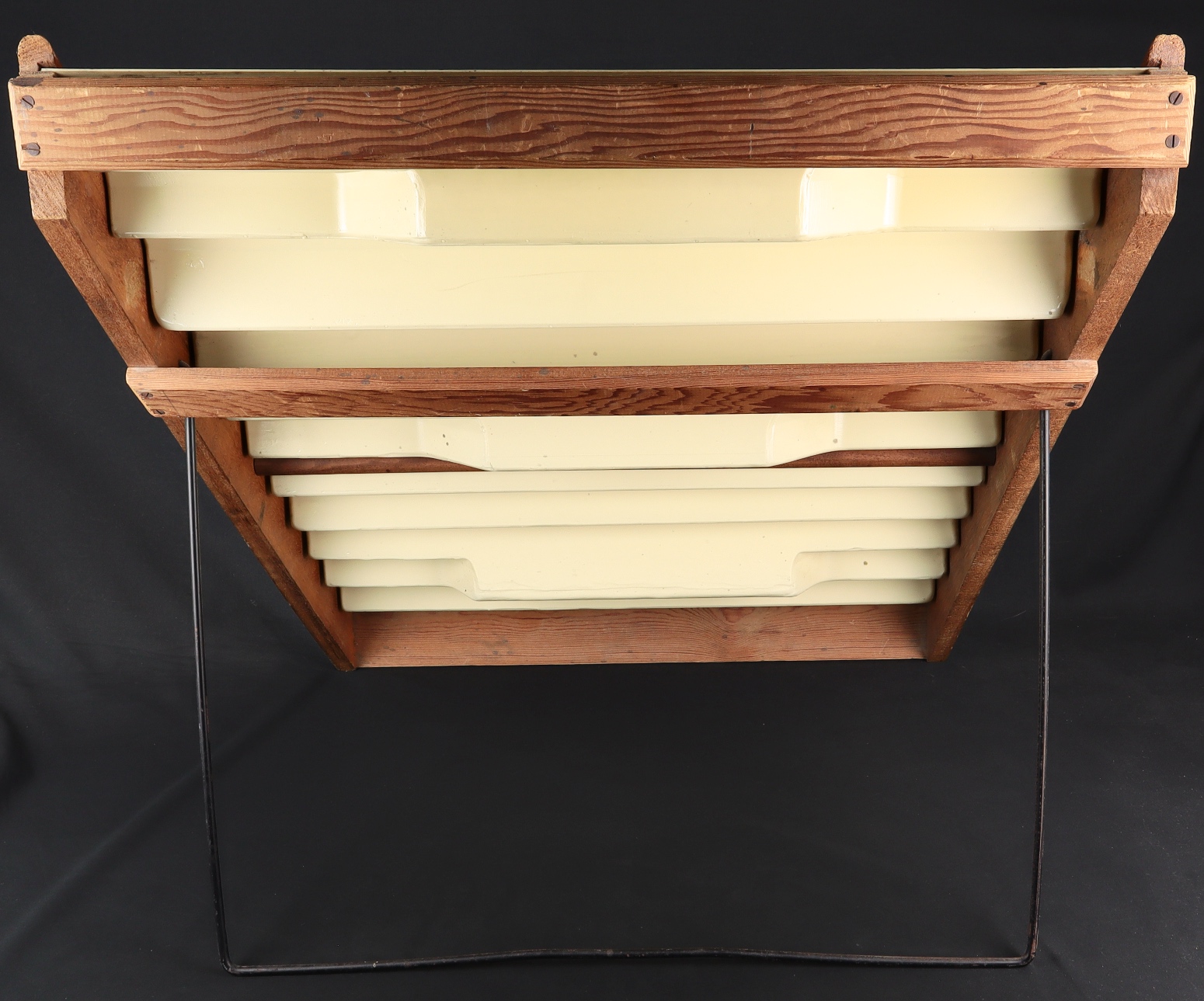 In all original condition, this display stand comprises a wooden frame with cream-coloured stiff plastic tiers on which one could display a fine array of Corgi models from this period. With formed holes for attaching models to the display. Eye-catching lower wooden sign ‘JOIN THE CORGI MODEL CLUB’.
