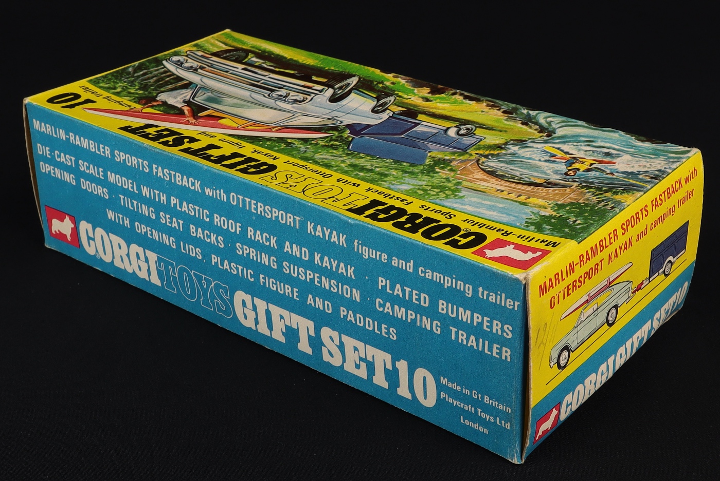 Marlin-Rambler Sports Fastback with Ottersport Kayak & Camping Trailer by Corgi Toys, Gift Set No. 10. Very, very near mint /boxed, with card packing. More high quality from The Elmer Collection. Starting bid £300. Please note that QDT apply 12.5% buyer's commission.