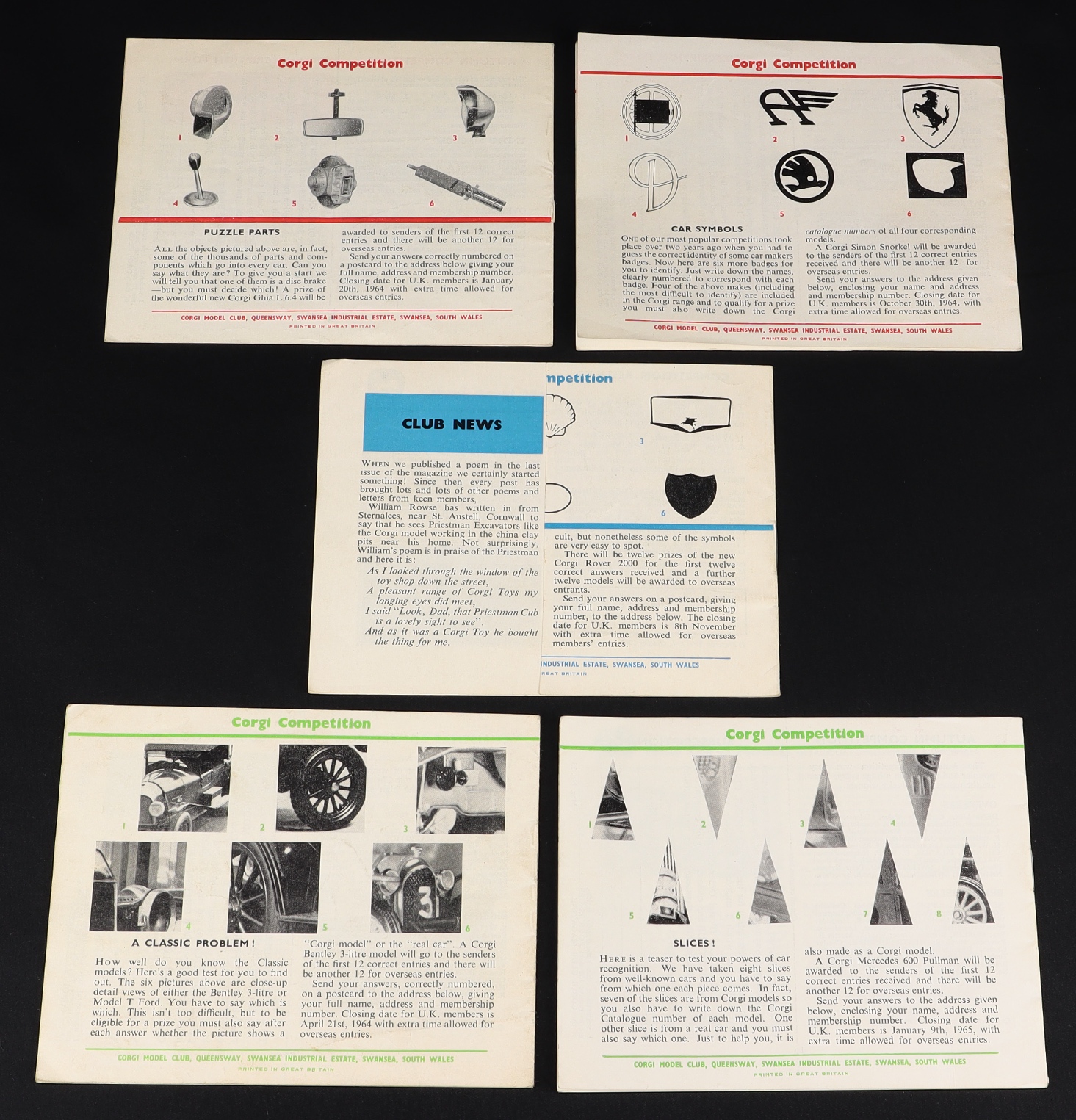 5 Corgi Model Club Magazines. Very near mint generally. Scarce find! QDT starting bid £50. Please note that QDT apply 12.5% buyer's commission.