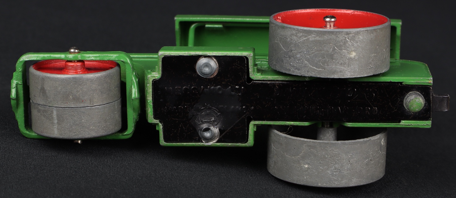 This is the early version of the Aveling-Barford Diesel Roller in deeper green finish with red rollers and note the red ‘badge’ detail head-on which is a feature of the early issue.