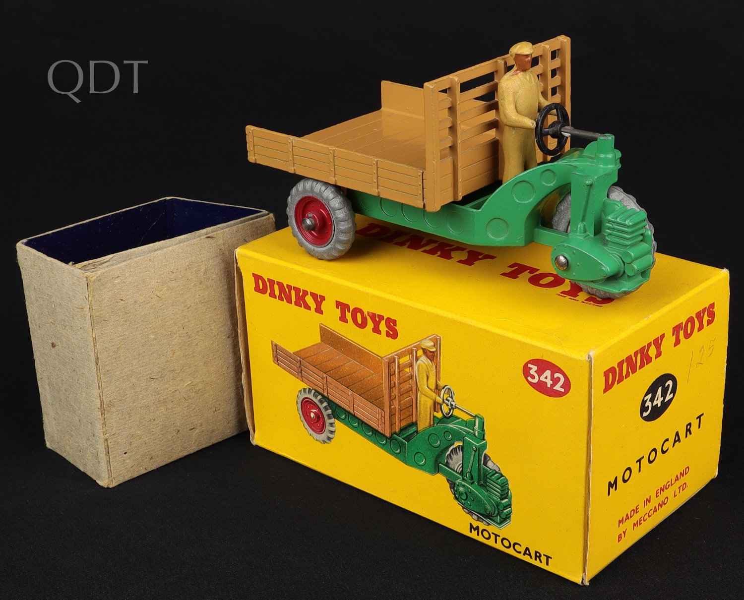 Motocart by Dinky Toys, No. 342. Very near mint/boxed.Scarce LIGHTER GREEN version. With packing. Super example from The Reference Collection. From The Reference Collection. Starting bid £150. Please note that QDT apply 12.5% buyer's commission.