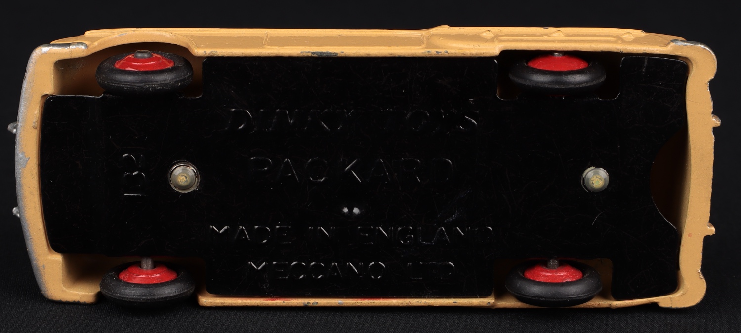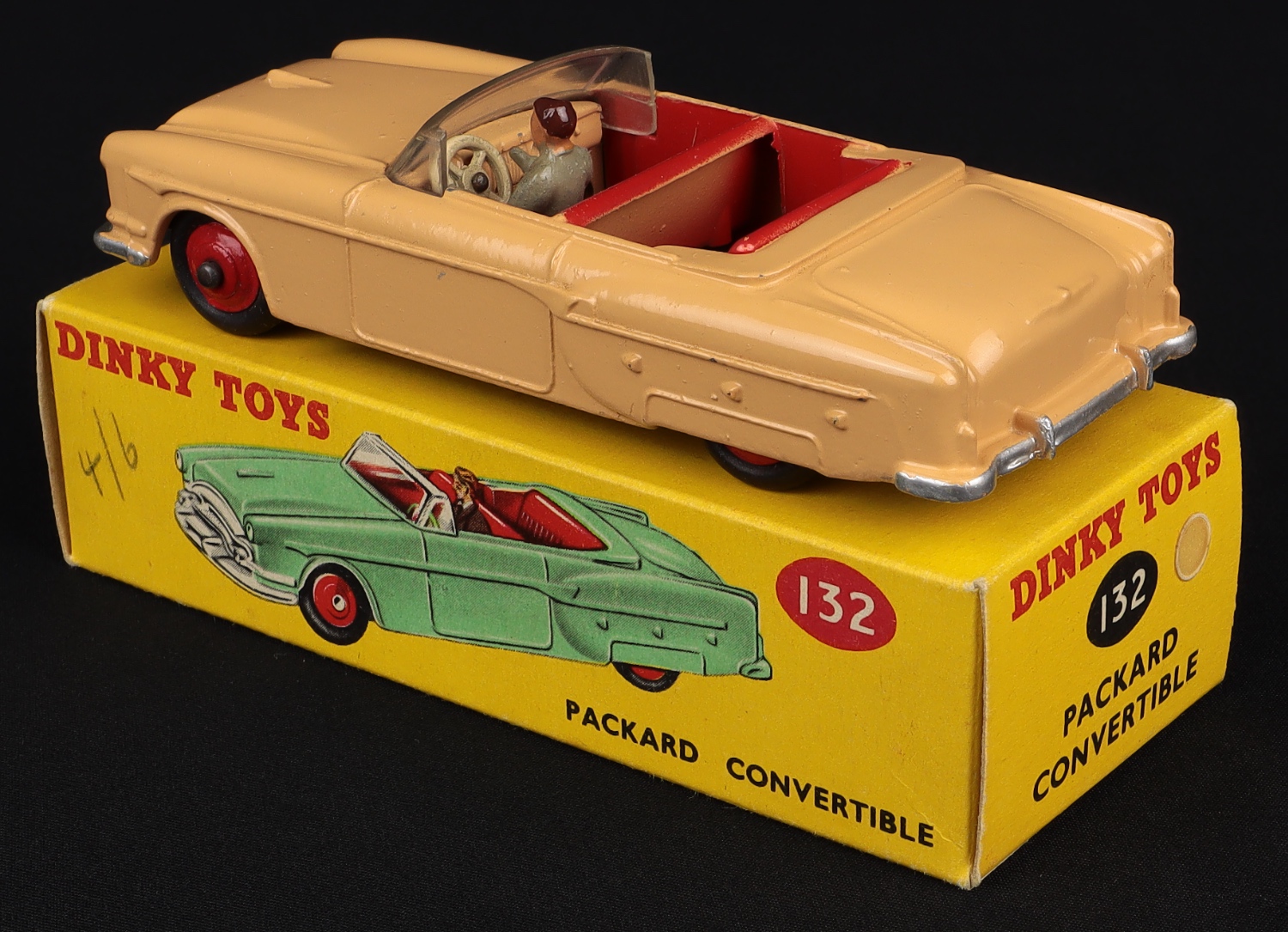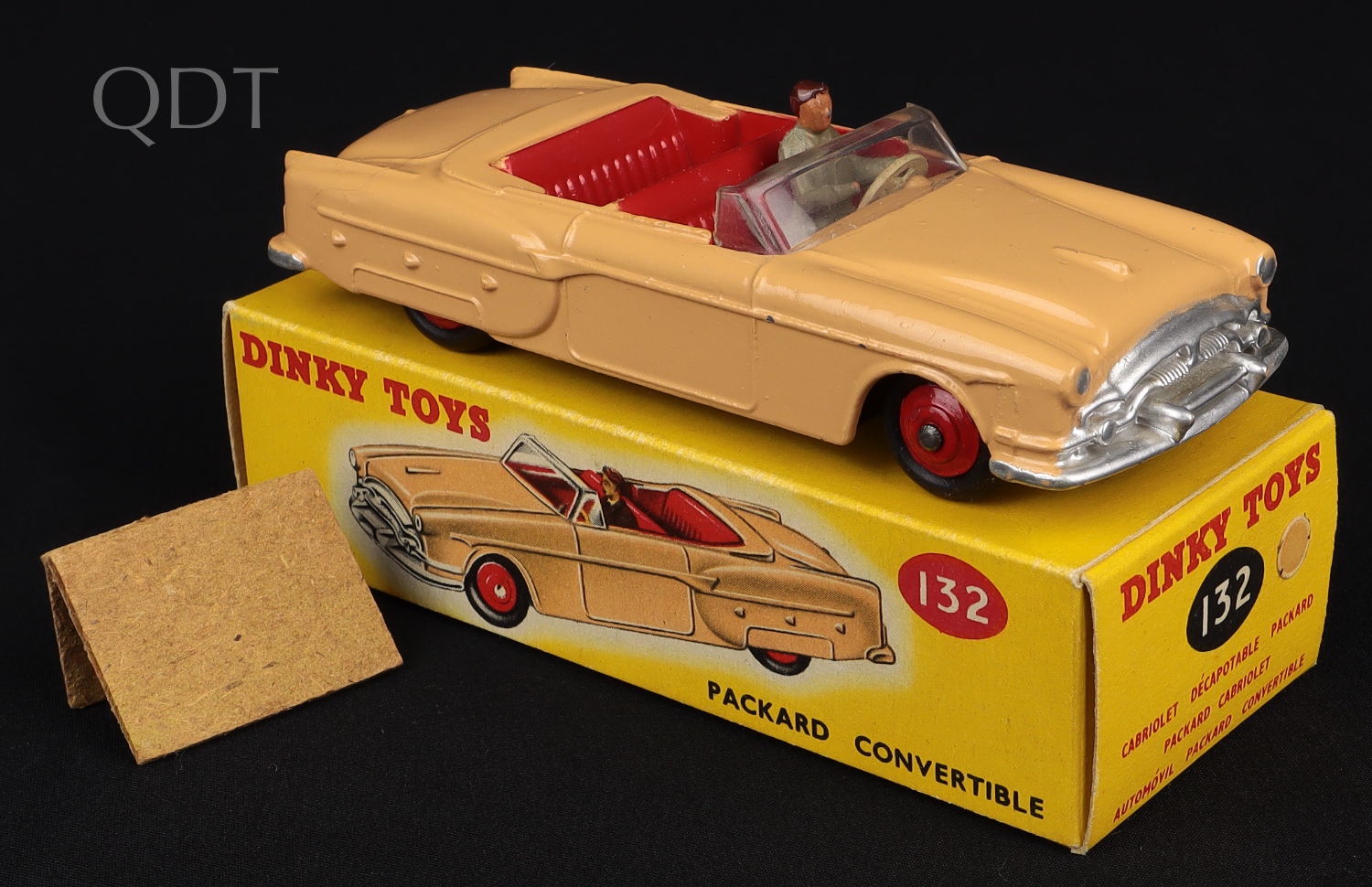 Packard Convertible by Dinky Toys, No. 132. Very near mint/boxed. With packing piece. Light tan version with red ridged wheels. Nice box! From The Reference Collection.