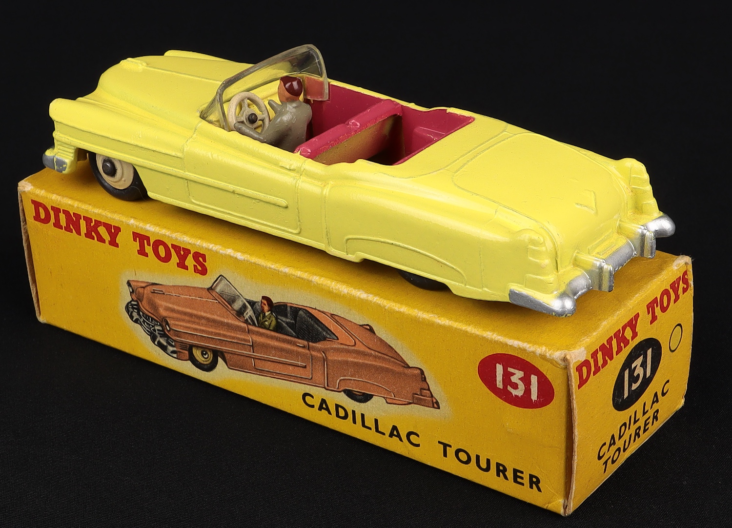 Cadillac Tourer by Dinky Toys, No. 131. Yellow version. Early issue with cream ridged wheels. Very near mint/boxed. From The Reference Collection.