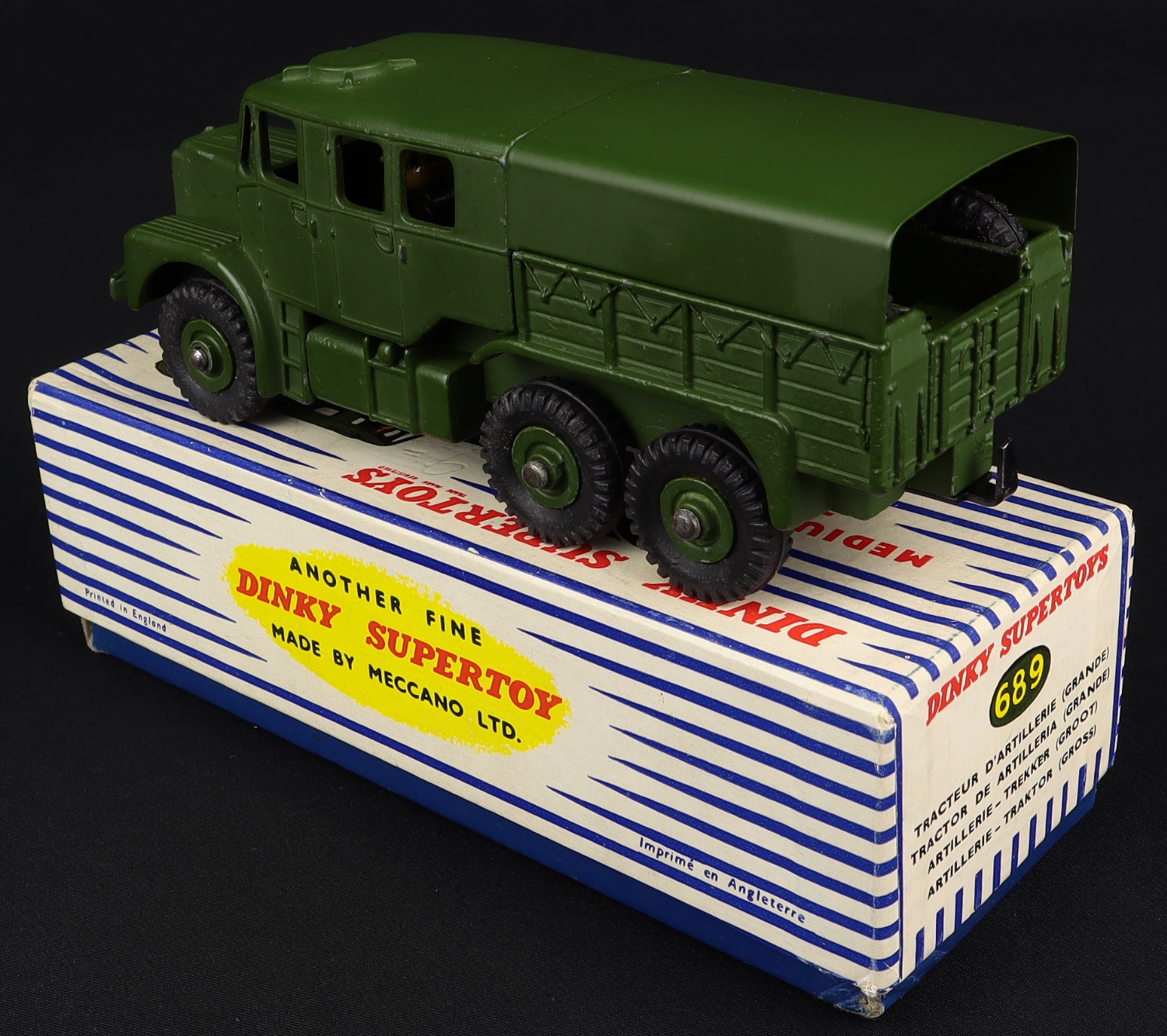 Medium Artillery Tractor by Dinky Supertoys, No. 689. Near mint plus/boxed, with packing card piece. From The Reference Collection.