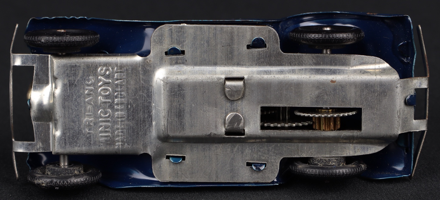 Shiny radiator and solid black wheels/tyres. Complete bumpers front and rear. Working clockwork motor.