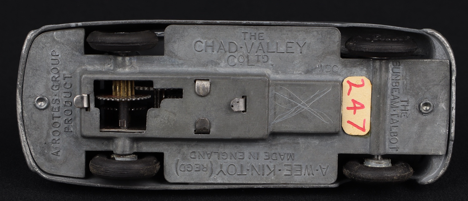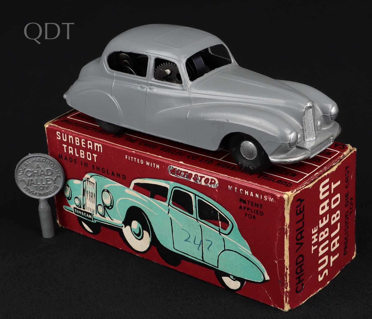The Sunbeam Talbot by Chad Valley (Wee-Kin). MID-GREY version. Very near mint /boxed. Non-working clockwork function with original key. Scarce model from The Denis Tyler Collection. Starting bid £100. Please note that QDT apply 12.5% buyer's commission.
