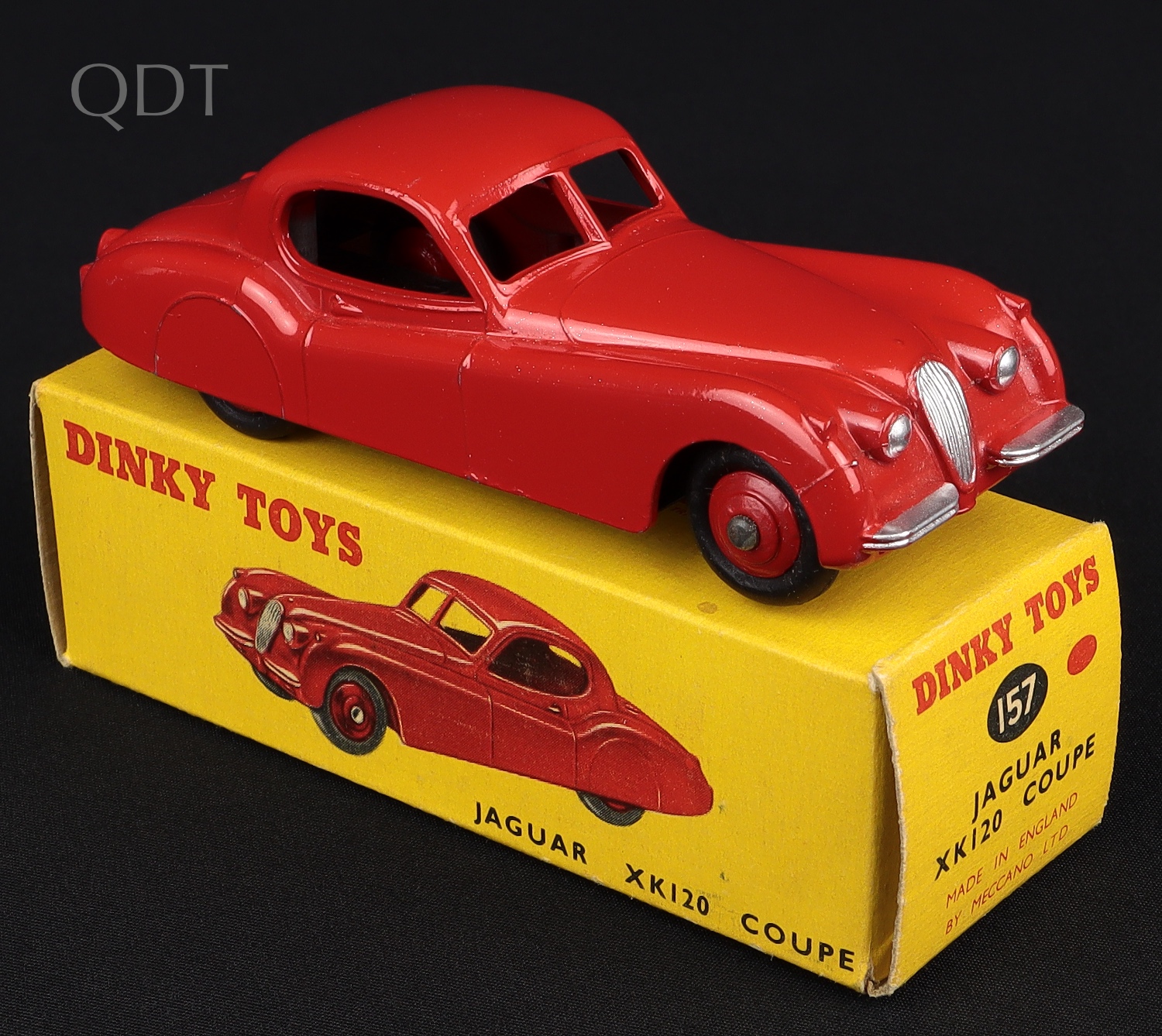 Jaguar XK120 Coupe by Dinky Toys, No. 157. Very near mint/boxed. Early red issue with cast wheels. Nice box too! From The Reference Collection of fine Dinky.