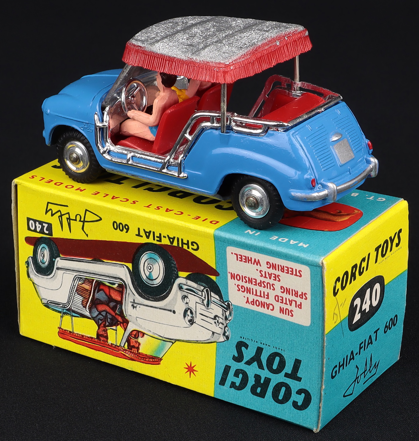 Ghia-Fiat Jolly by Corgi Toys, No 240. Mid-blue version. Very, very near mint/boxed. From The Elmer Collection of Corgi Toys.