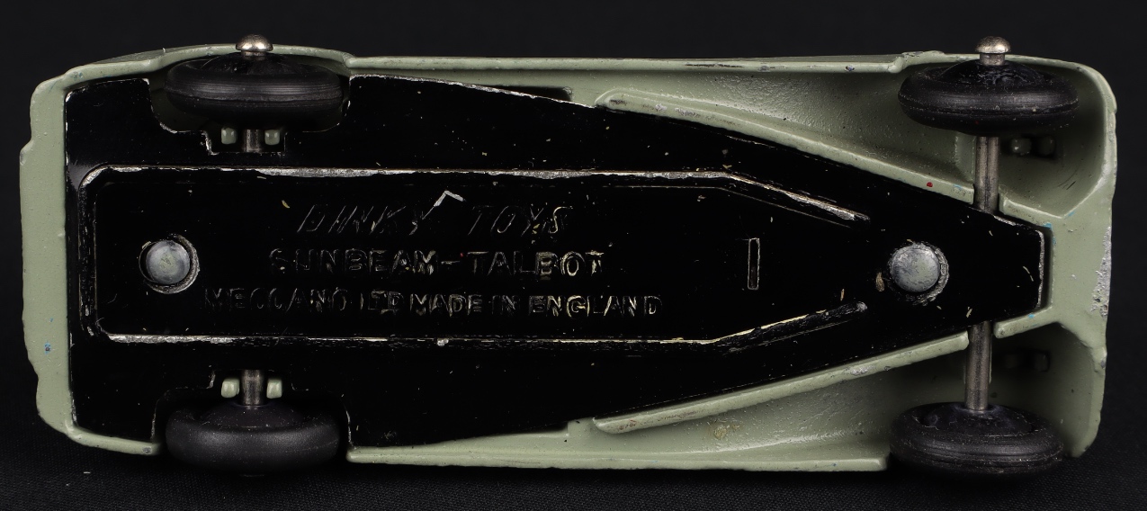 Sunbeam Talbot Sports by Dinky Toys, No. 38B. Scarce early GREY version, deep grey tonneau, SMOOTH black wheels. Very near mint/never boxed individually. From The Denis Tyler Collection. QDT starting bid £125. Please note that QDT apply 12.5% buyer's commission.