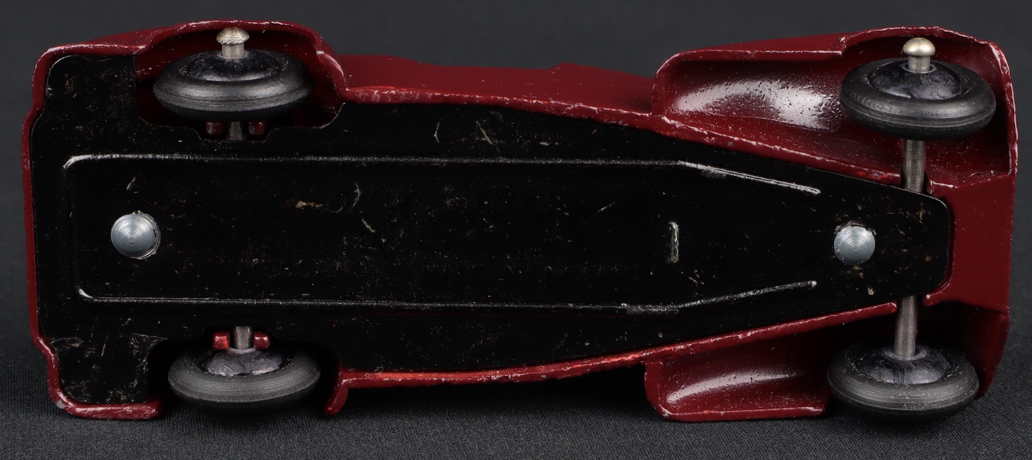 Alvis Sports Tourer by Dinky Toys, No. 38D. Near mint plus/never boxed individually. Maroon, scarce with red seats, smooth wheels, solid steering wheel. From The Denis Tyler Collection. Starting bid £125. Please note that QDT apply 12.5% buyer's commission.
