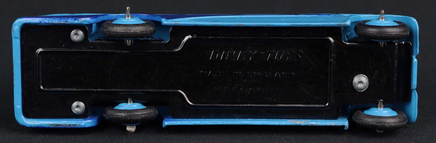 This early Dinky bus was produced between 1948-52 in three different colour schemes. This example is finished in an attractive two-tone blue, with blue wheels. All original close to mint condition. Smooth original tyres run well.