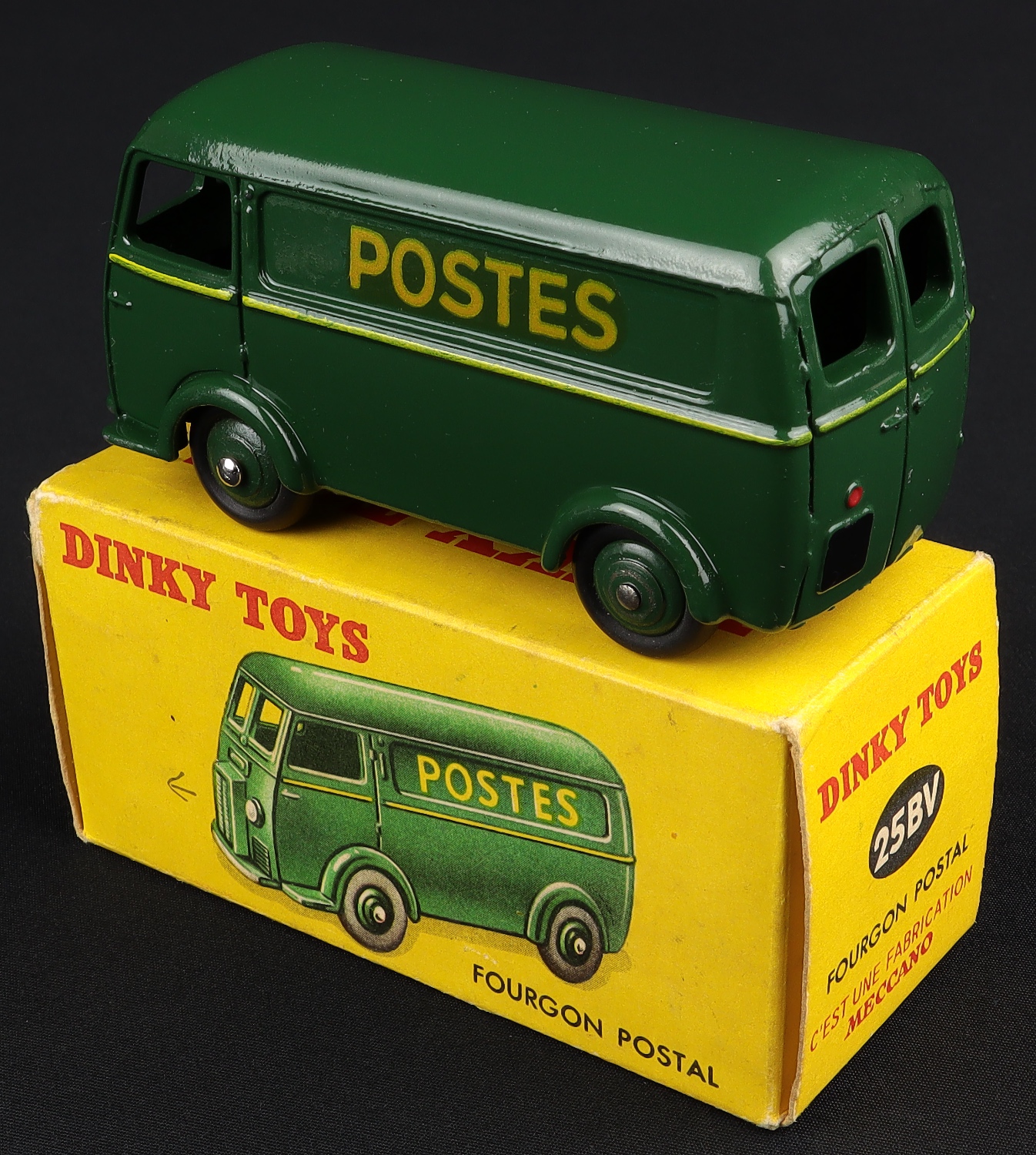 Peugeot Post Van by French Dinky Toys, No. 25BV. *Version in DEEP GREEN with narrow 'POSTES' lettering & cross-hatching to roof underside*. Very near mint/boxed. From The Berlin Collection.