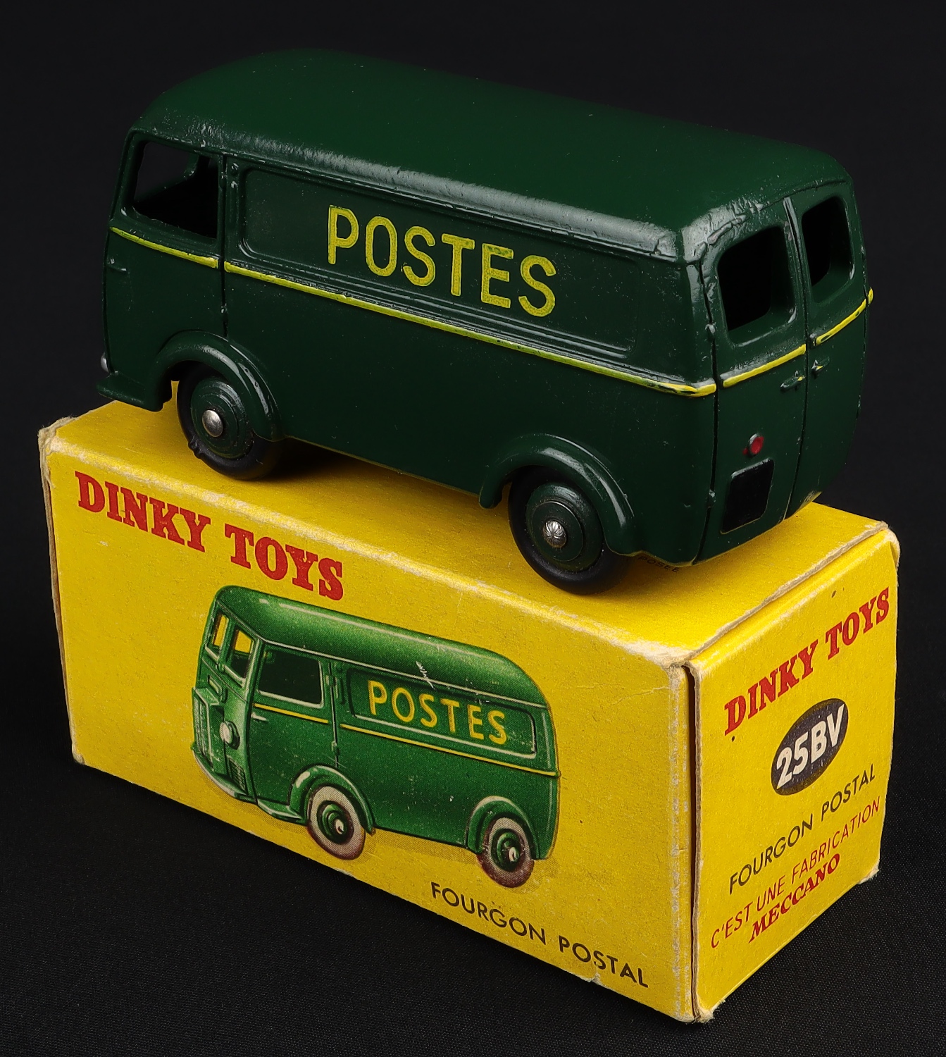 Peugeot Post Van by French Dinky Toys, No. 25BV. *Version in DEEP GREEN with narrow 'POSTES' lettering & cross-hatching to roof underside*. Very near mint/boxed. From The Berlin Collection.