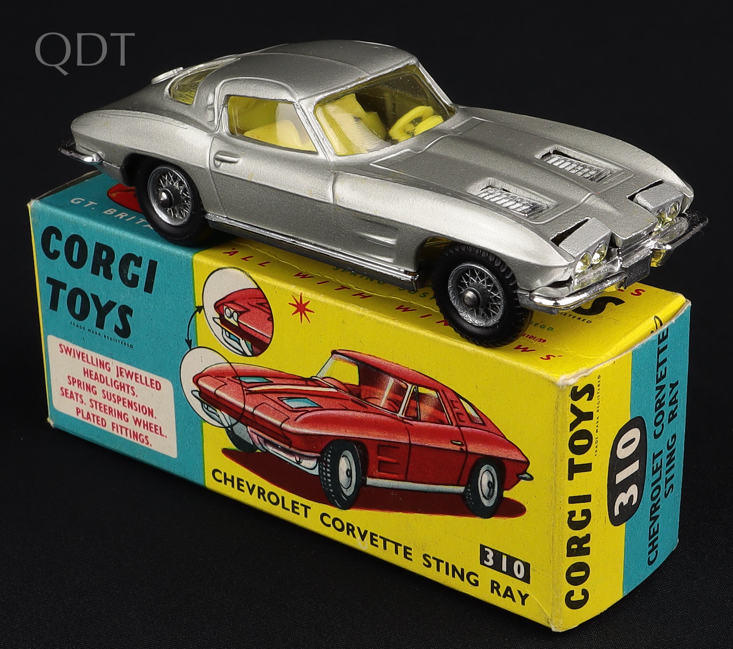 Chevrolet Corvette Sting Ray by Corgi Toys, No. 310. Very near mint/boxed. Silver version with spoked wheels. From The Rickman Collection.